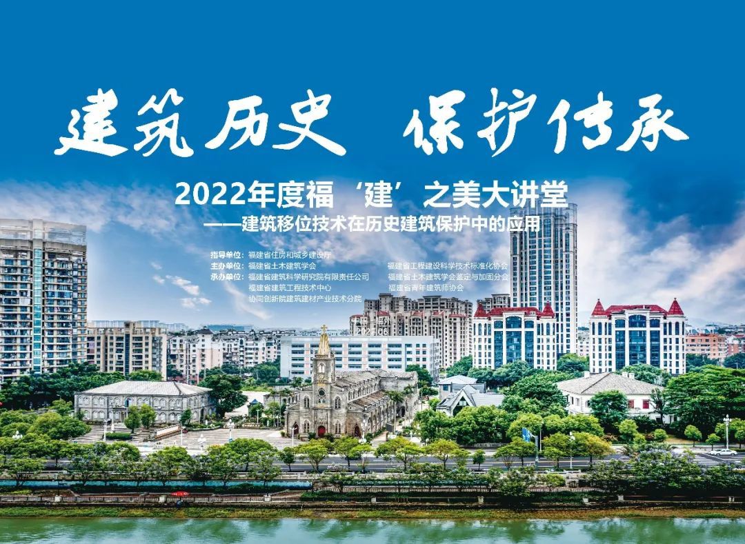 6月10日下午,由福建省建筑科學(xué)研究院有限責(zé)任公司(以下簡稱“福建建科院”)為主承辦的2022年度?!ā来笾v堂系列活動第七場“建筑歷史 保護(hù)傳承——建筑移位技術(shù)在歷史建筑保護(hù)中的應(yīng)用”主題講座在福州三坊七巷全國優(yōu)秀建筑設(shè)計展示館(郎官巷23號)順利舉行。